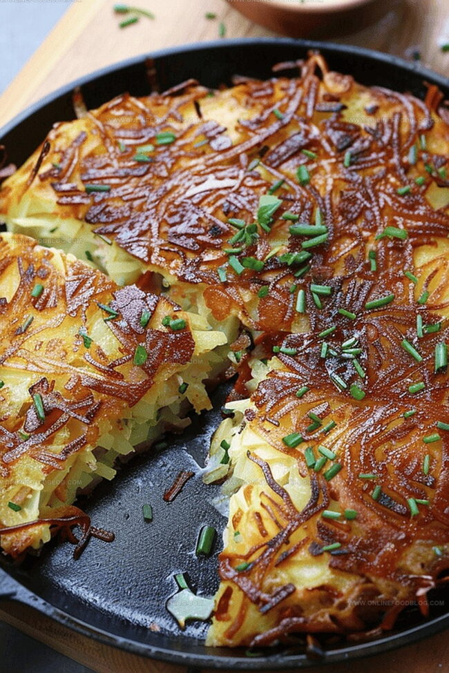 - Sprinkle finely chopped green onions across the potato layer, allowing them to infuse their delicate flavor into the rösti.