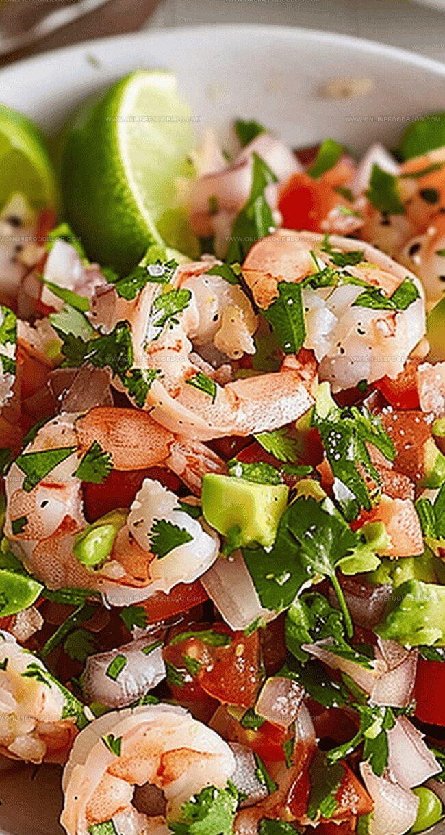 Zesty lime-marinated easy shrimp ceviche brings coastal Mexican flavors to your table. Crisp vegetables and tender seafood combine for a refreshing appetizer that delights with its balanced, tangy profile.