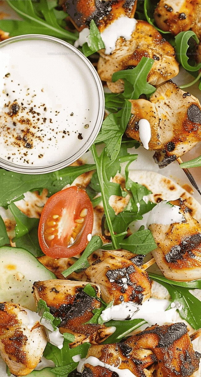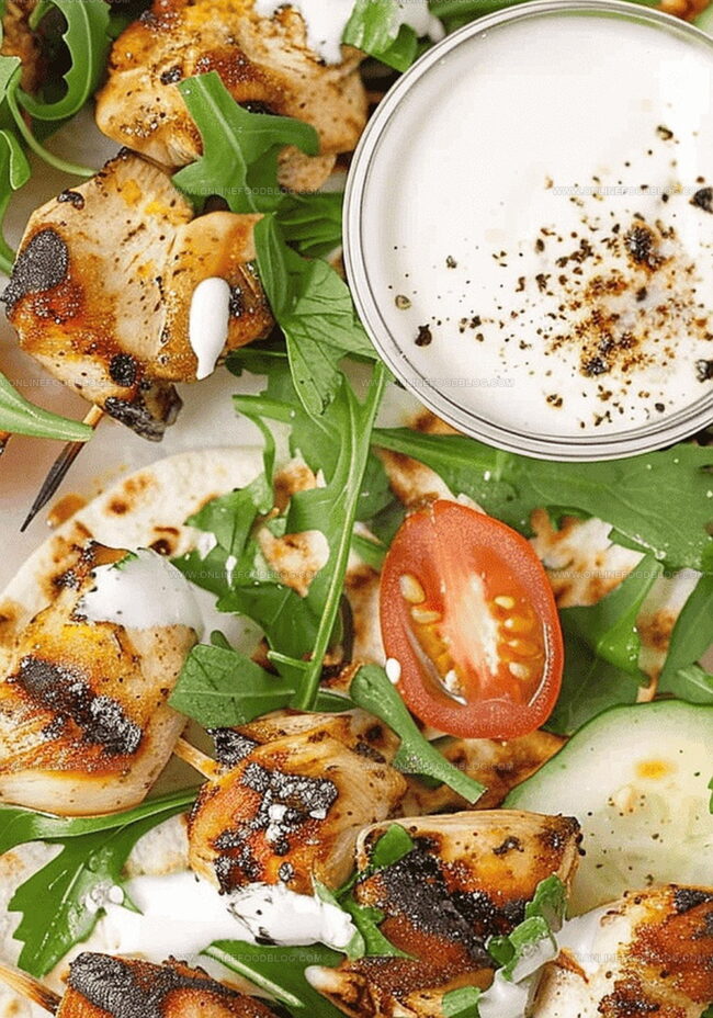 - Plating and Presentation: Arrange sizzling skewers on a generous platter, surrounding with warm pita bread, cherry tomatoes, cucumber slices, red onion, arugula, and mint leaves. Drizzle reserved marinade over the chicken and serve yogurt sauce on the side, inviting guests to personalize their culinary journey.
