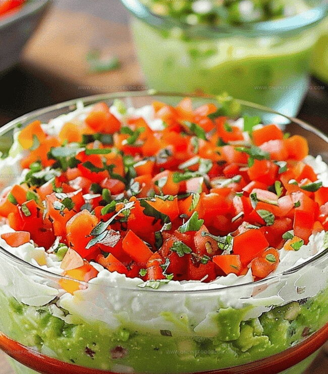 Bold and bright, this layered masterpiece combines classic Mexican-inspired ingredients into one irresistible appetizer.