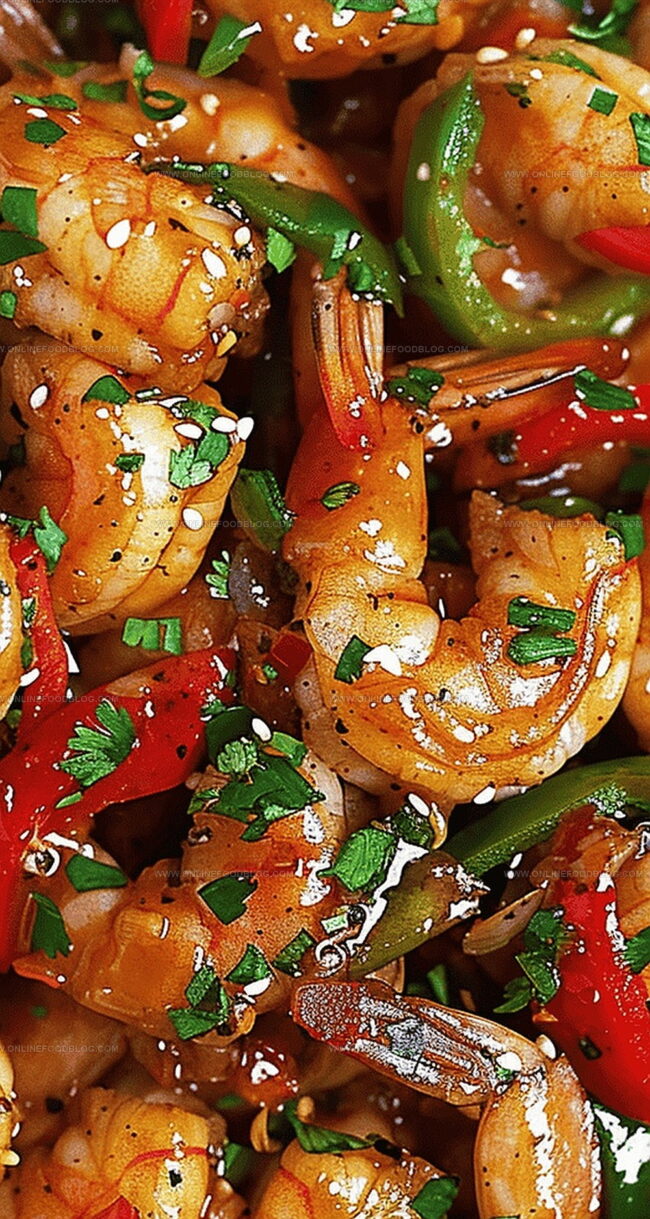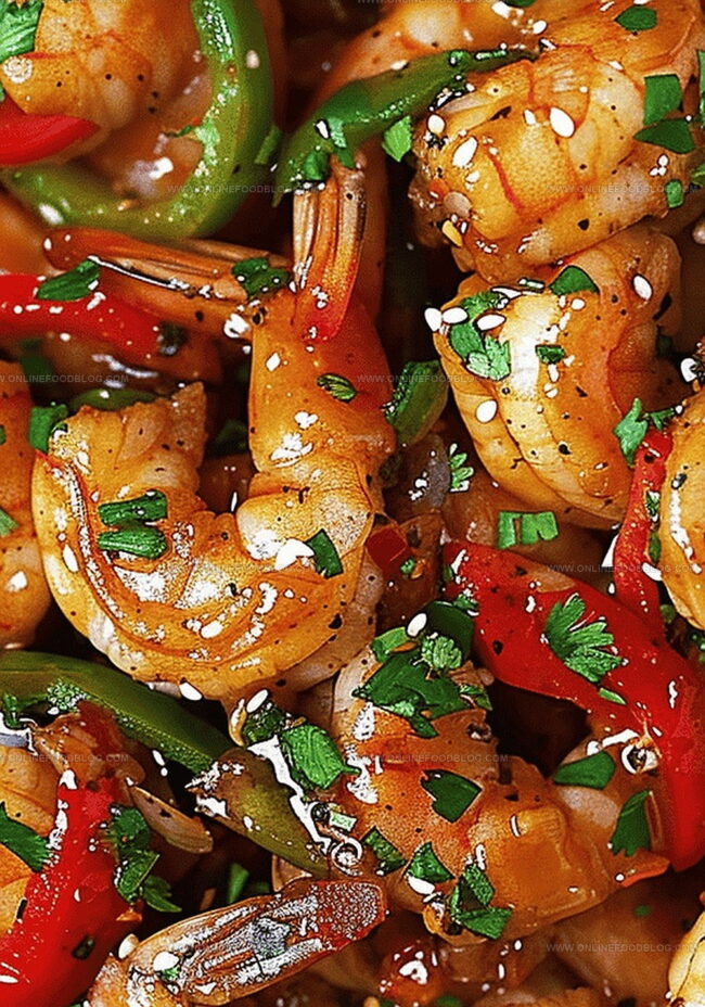 Plating Finale: Arrange sautéed bell peppers as a vibrant base, crown with glossy shrimp, and embellish with toasted sesame seeds and freshly chopped parsley for a restaurant-quality presentation.