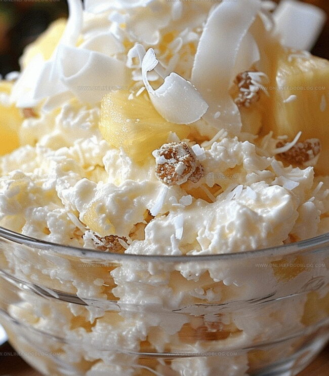 Tropical pineapple coconut fluff elevates ordinary desserts into a sweet, creamy paradise of refreshing flavors.