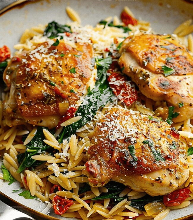 Tuscan Chicken and Orzo Skillet offers a Mediterranean dream on one pan, blending Italian herbs, sun-dried tomatoes, and creamy spinach with tender chicken. Home cooks can savor this restaurant-quality meal in less than 30 minutes, bringing comfort and elegance to your weeknight dinner table.