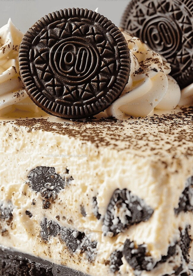 Top with billowy whipped cream, adding delicate swirls around edges. Sprinkle reserved cookie crumbs for a playful, crunchy finish that elevates this dessert from delicious to extraordinary.