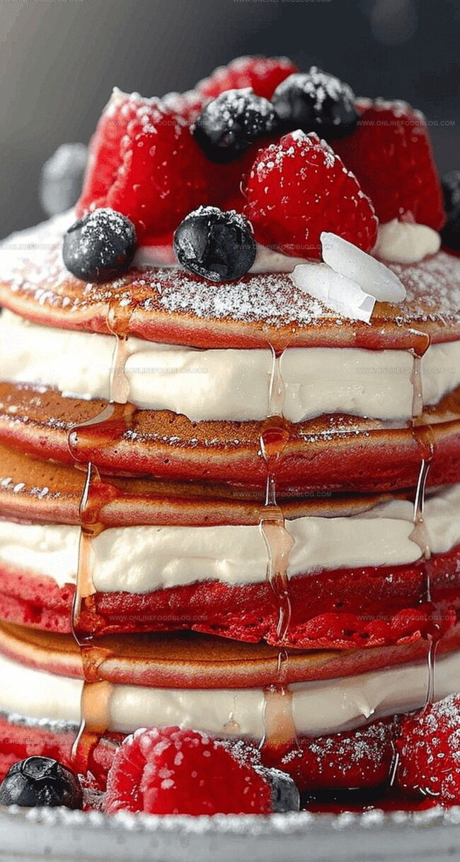 - Elegant Presentation: Artfully stack the scarlet pancakes, cascading cream cheese frosting across the top and garnishing with fresh berries, chocolate fragments, and a delicate powdered sugar dusting.