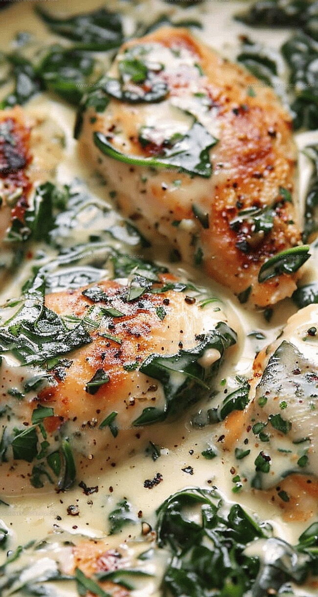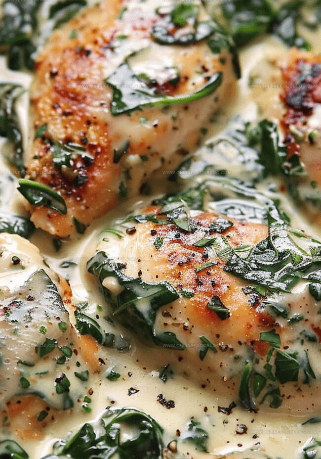 - Final Integration: Return seared chicken to the skillet, submerging each piece in the verdant spinach cream sauce, ensuring thorough heating and complete flavor absorption.