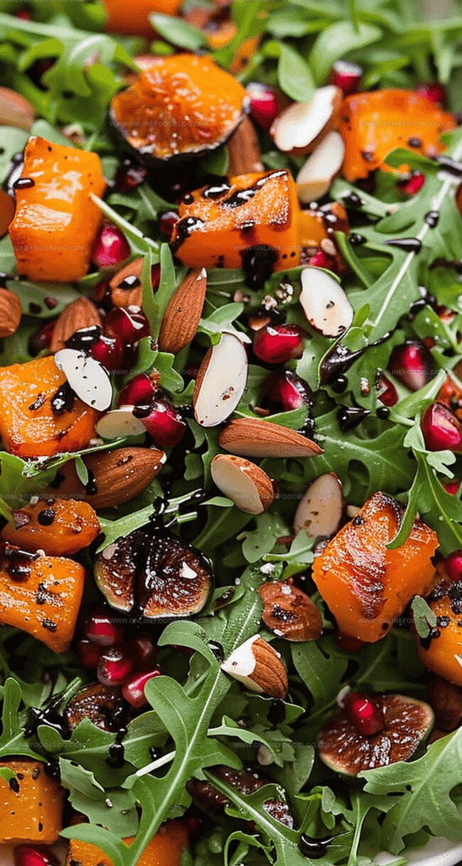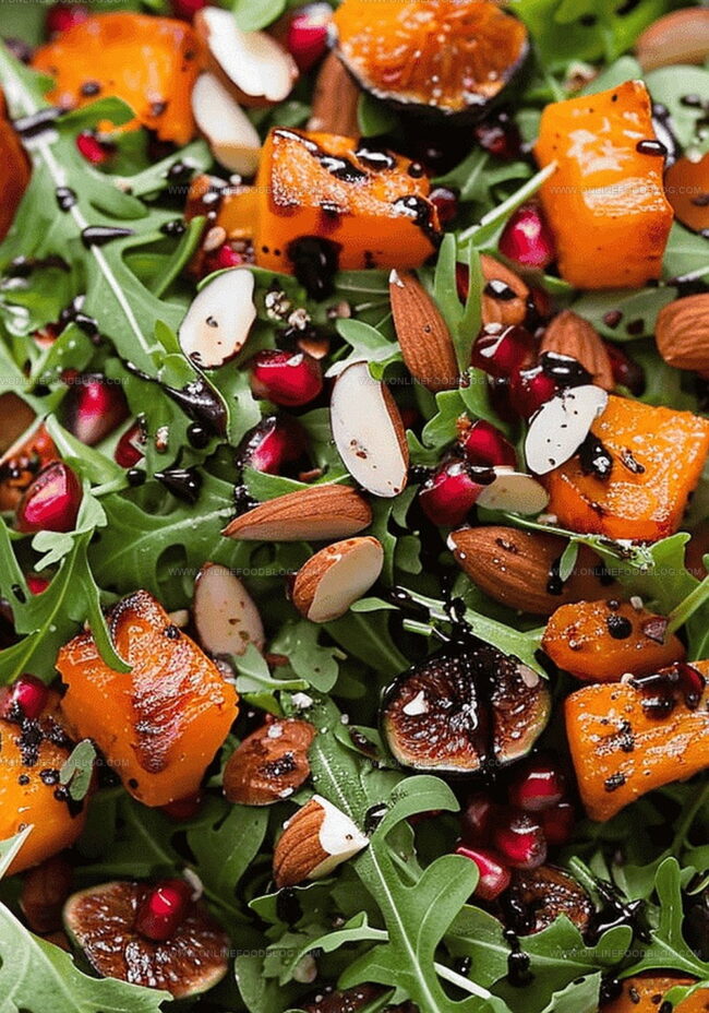 - Salad Assembly: Layer arugula in a serving bowl, top with warm roasted squash cubes, and sprinkle dried figs, toasted almonds, and pomegranate arils for complex flavor and textural contrast.