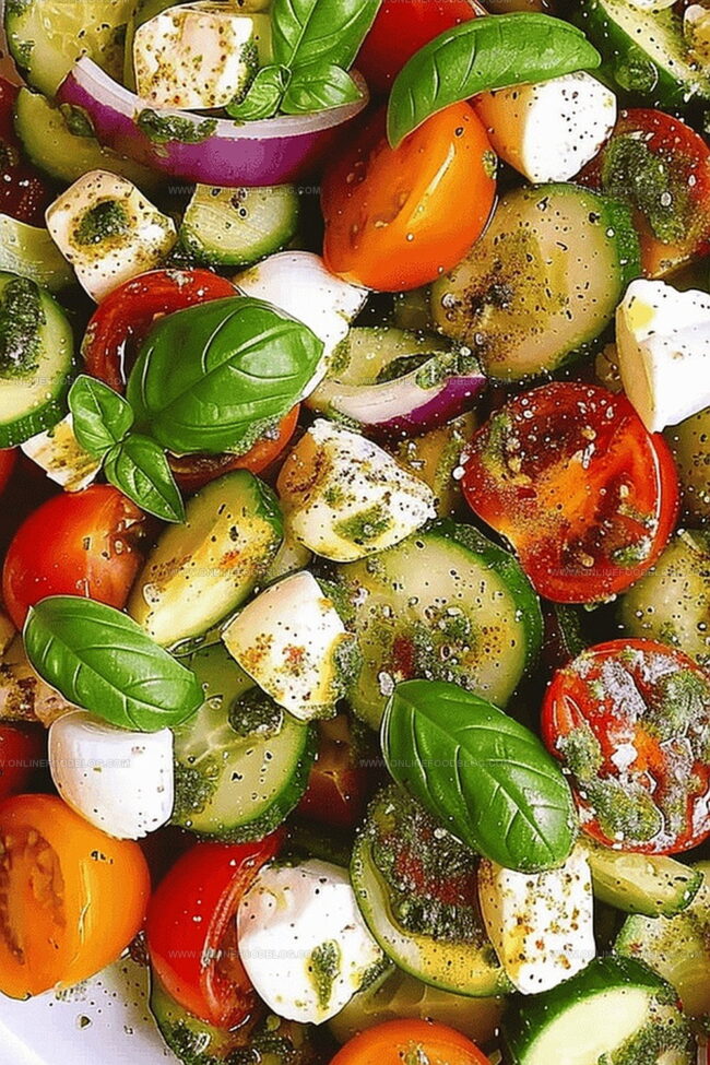 - Flavor Layering: Distribute miniature mozzarella balls evenly throughout the vegetable medley, then generously drizzle basil pesto to infuse the salad with herbal complexity and rich texture.